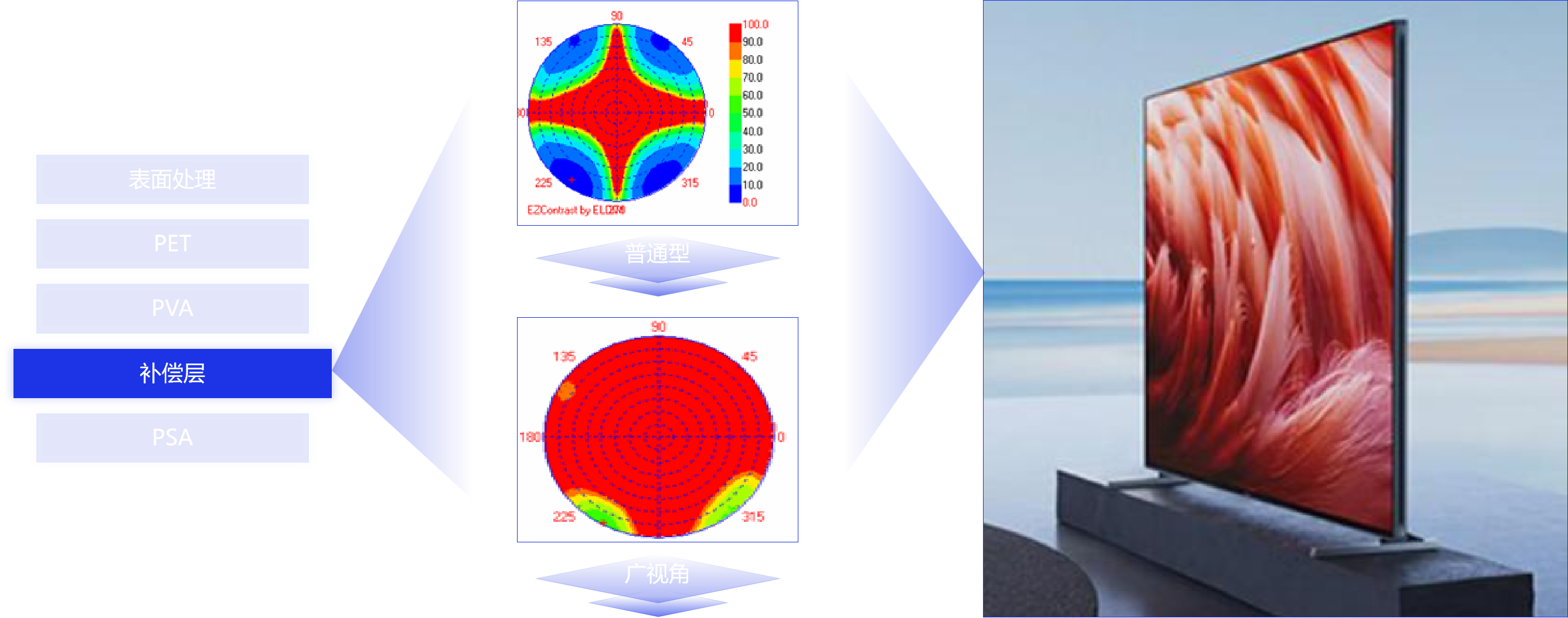 為此,杉金光電針對OLED領域進行了重點投資強化,在這條新賽道上跑出加速度。本屆DIC EXPO上,杉金光電在OLED偏光片展區展出了4種新銳產品,涉及OLED TV、OLED IT、OLED Mobile和可折疊四大應用領域,并展現出了強大的性能,如可實現圓偏光功能的OLED TV用偏光片,在明亮的室內也能實現純黑的效果。目前,杉金光電部分OLED產品已實現量產。部分產品則已向客戶送樣,預計今年內實現量產。