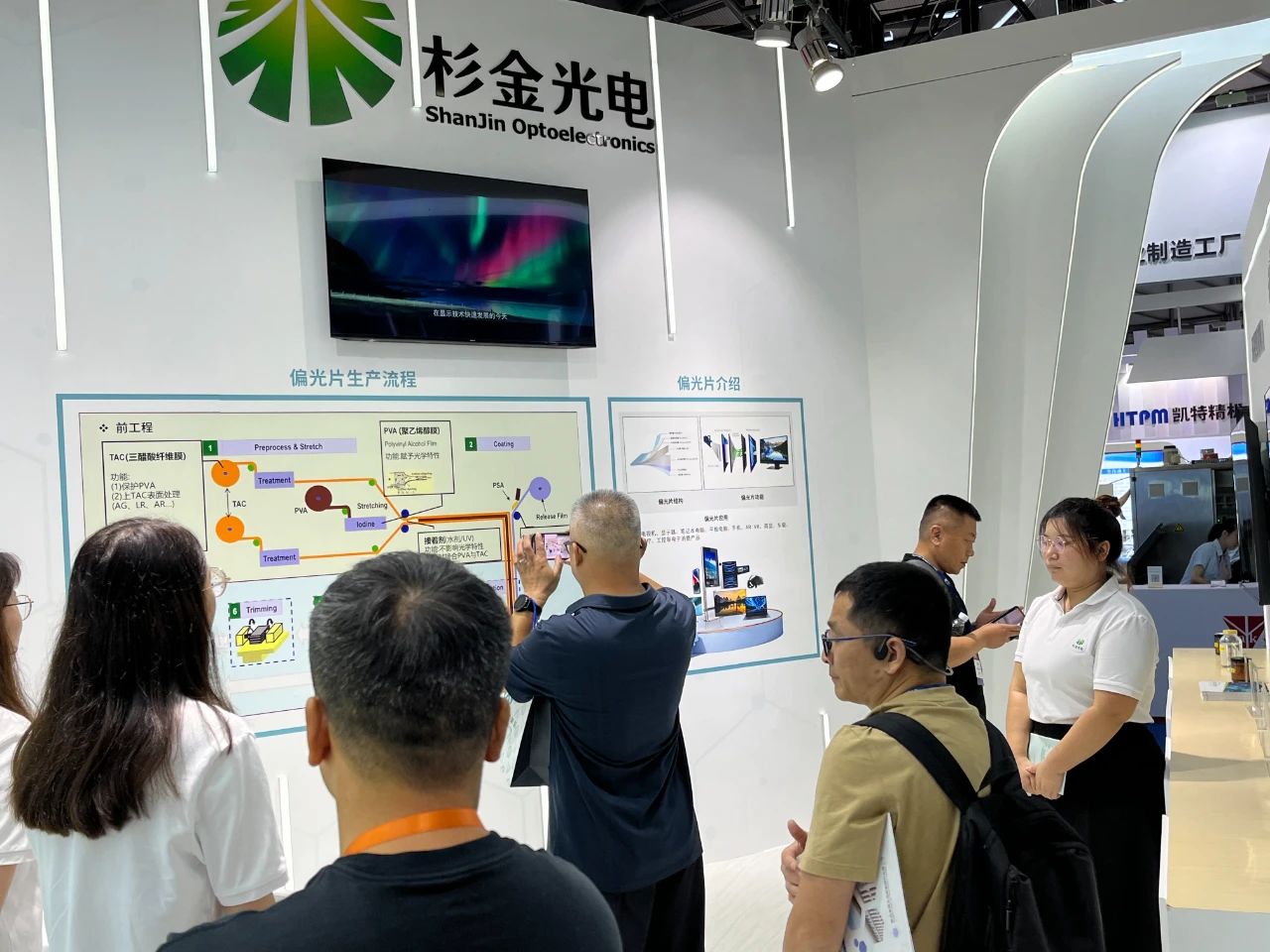 此次參展,杉金光電帶來了高端LCD偏光片、OLED偏光片、中小型偏光片、環保型溶劑等領域的多項極具競爭力的產品,還設立了偏光片互動體驗區,讓觀眾更加清晰、直觀地了解到偏光片的功能和成像原理,吸引了眾多觀眾駐足。